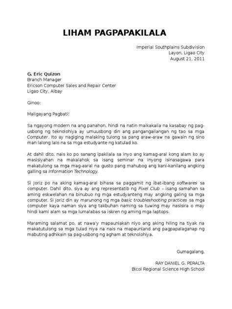Halimbawa Ng Liham