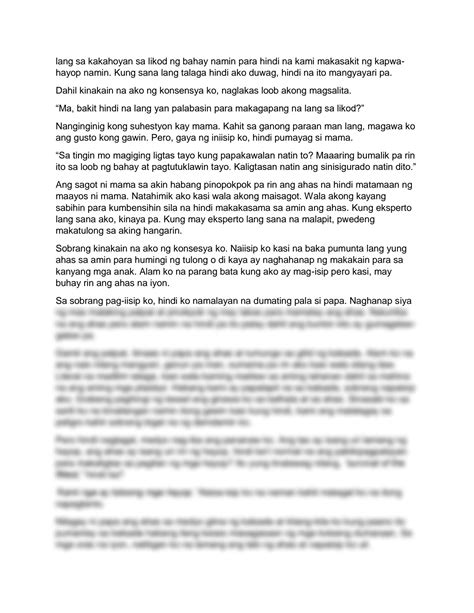 - Detalye ng Pangyayari - Dito ipinapakita ang mga detalye na nagbibigay ng mas malalim na pag-unawa sa pangyayari. Maaaring isama ang mga pagsasalarawan ng mga eksena at mga salitang ginamit ng mga tauhan.